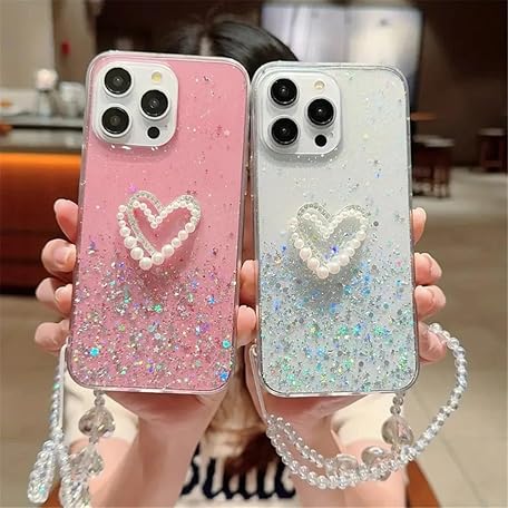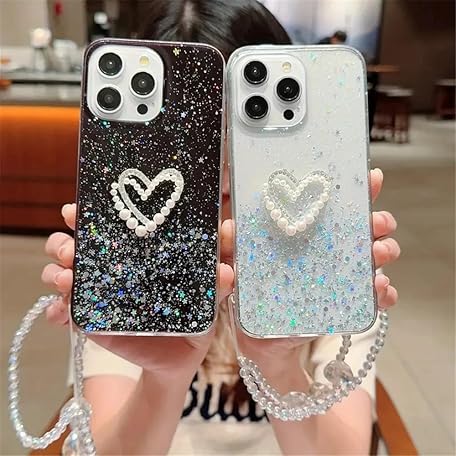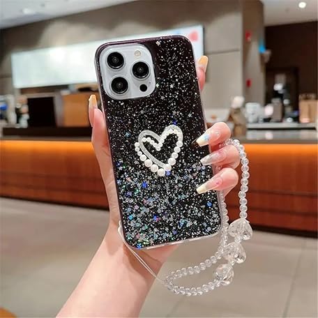 for Samsung Galaxy A10S Case Bling Luxury Cute 3D Love Pearl Sparkle Glitter Fancy Protective Phone Cover with Wrist Strap for Woman Girls,Black