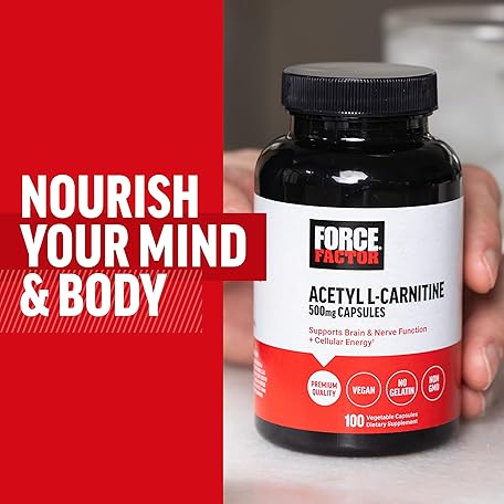 Thông tin sản phẩm Force Factor Acetyl L-Carnitine Brain Supplement, Nerve Support Supplement, and Cellular Energy Booster, Acetyl L-Carnitine 500mg, Premium Quality, Vegan, Non-GMO, 100 Vegetable Capsules