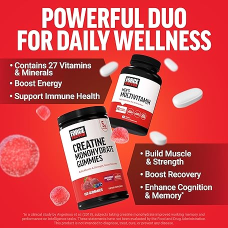 Thương hiệu Force Factor là cái tên nổi tiếng được rất nhiều khách hàng trên thế giới chọn lựa. Với kiểu dáng đẹp mắt, sang trọng, sản phẩm Force Factor Creatine Gummies, 5 Grams Creatine Monohydrate for Muscle Gain, Mixed Berry + Force Factor Men’s Multivitamins, Multivitamin for Men Plus Amino Acids with 27 Vitamins and Minerals là sự lựa chọn hoàn hảo nếu bạn đang tìm mua một món cho riêng mình.
