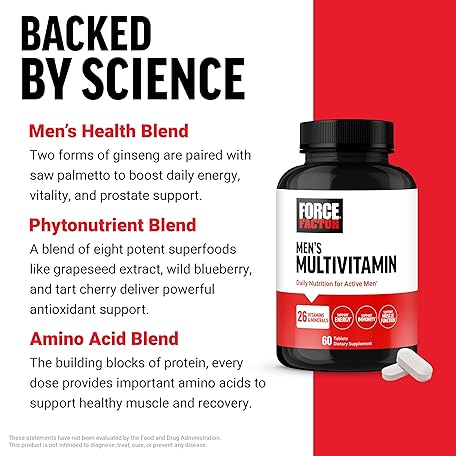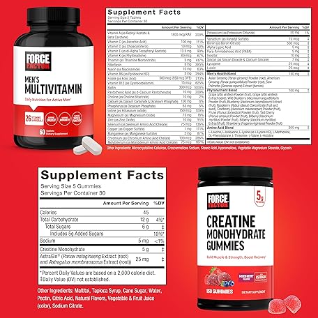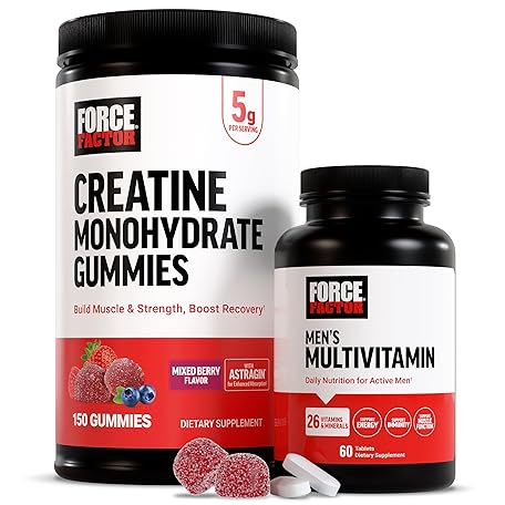 Thông tin sản phẩm Force Factor Creatine Gummies, 5 Grams Creatine Monohydrate for Muscle Gain, Mixed Berry + Force Factor Men’s Multivitamins, Multivitamin for Men Plus Amino Acids with 27 Vitamins and Minerals