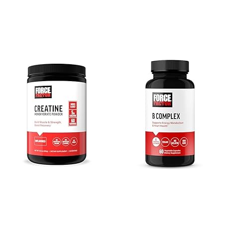 Thông tin sản phẩm Force Factor Creatine Powder 60 Servings and Vitamin B Complex 60 Capsules Bundle for Muscle Gain, Strength, Energy, and Faster Recovery
