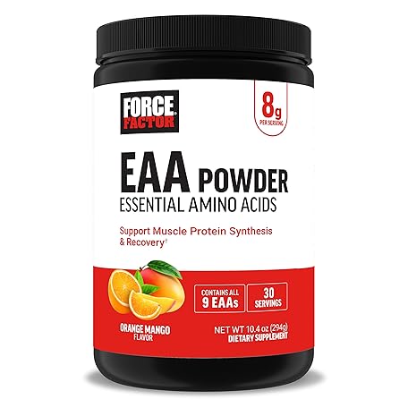 Sản phẩm Force Factor Essential Amino Acids, Full Spectrum EAAs Amino Acids Powder, Amino Acids Supplement for Women and Men to Support Healthy Muscle and Workout Recovery, Orange Mango, 30 Servings đang được bán với giá ưu đãi là $21.7564 tại nước Mỹ.