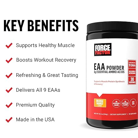 Thông tin sản phẩm Force Factor Essential Amino Acids, Full Spectrum EAAs Amino Acids Powder, Amino Acids Supplement for Women and Men to Support Healthy Muscle and Workout Recovery, Orange Mango, 30 Servings