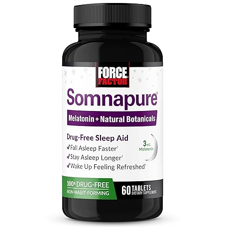 Thông tin sản phẩm Force Factor Somnapure Drug-Free Sleep Aid for Adults for Occasional Sleeplessness with Melatonin & Valerian, Non-Habit-Forming Sleeping Pills, Fall Asleep Faster, Wake Up Refreshed, 60 Tablets