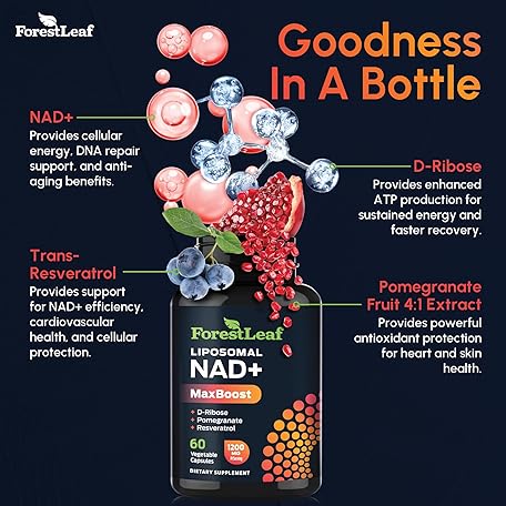 Thông tin sản phẩm ForestLeaf NAD Resveratrol Capsules, Liposomal NAD Supplement for Women and Men with D-Ribose and Pomegranate, NAD+ for Energy, Focus and Anti-Aging Support, NMN Supplement Alternative (60 Caps)