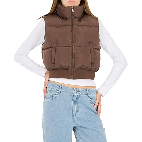 • Forever 21 Women's Puffer Vest – Cropped Quilted Zip-Up Outerwear with High Neck Collar