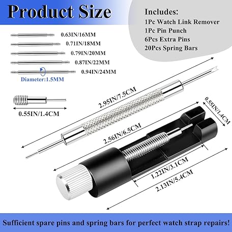 Thông tin sản phẩm Forgynex Watch Link Removal Tool, Premium Watch Band Tool Kit to Adjust and Remove Bracelet, Pin Remover for Sizing Strap, Adjust Watches Repair Kit With a Pin Punch, 6PCS Extra Replacement, 20PCS Spring Bars