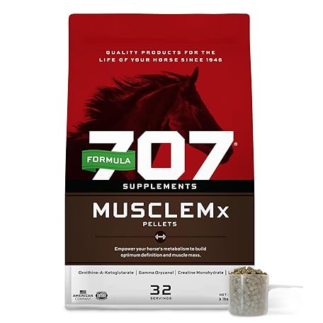 Thông tin sản phẩm Formula 707 MuscleMx Equine Supplement, 3lb Bag – Conditioning Support and Muscle Builder for Horses with Lysine, Gamma Oryzanol, Creatine & OKG
