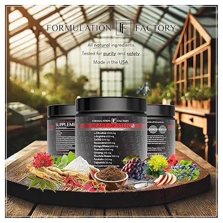 Thông tin sản phẩm Formulation Factory Heart of Steel: 10-in-1 Metabolic Maximizer Nitric Oxide Supplement, Blood Pressure Support, L Arginine, L Citrulline Natural Pre-Workout: Energy Management 120 Count