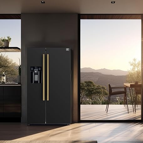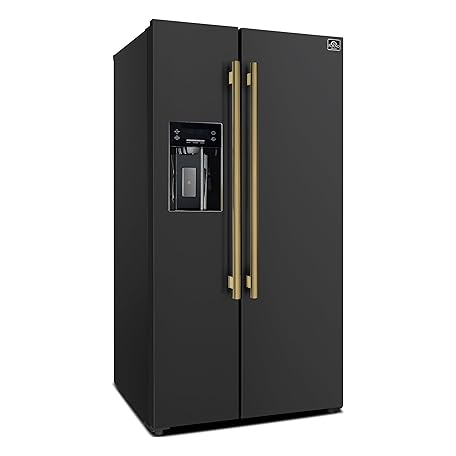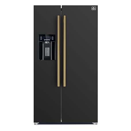 Forno Salerno 36" Side by Side 20 Cu.Ft Free Standing Black Fridge - Stainless Steel Refrigerator with Ice Maker & Decorative Grill - Touch Control Kitchen Fridge with Child Lock and Vacation mode