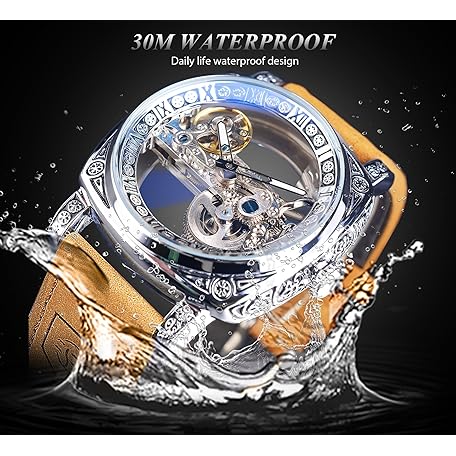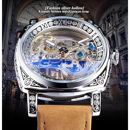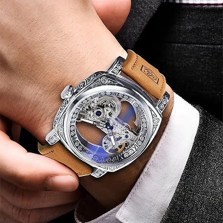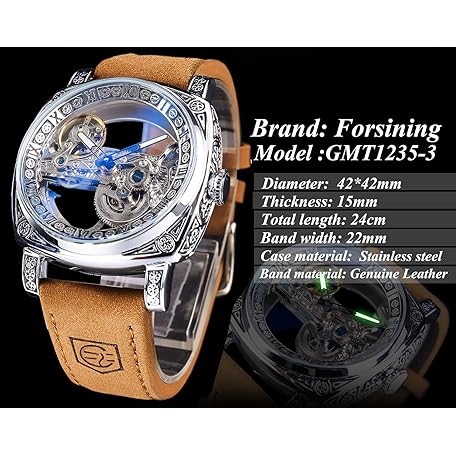 Thông tin sản phẩm FORSINING Men's Luxury Square Carving Mechanical Watch, Retro Totem Double Sided Hollow Skeleton Self-Wind Automatic Watches, Vintage Leather Strap Wristwatch Reloj para Hombre