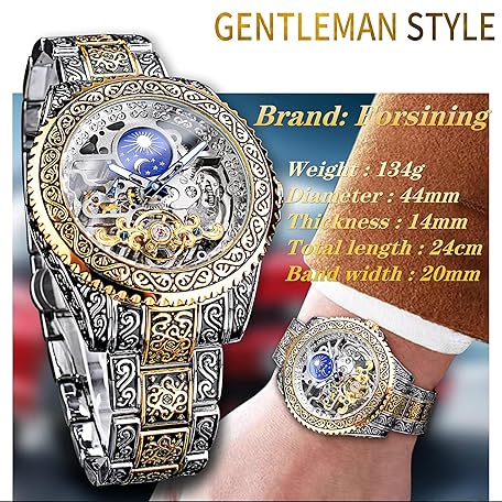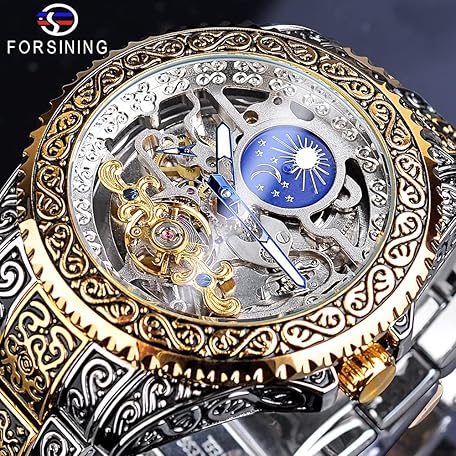 Thương hiệu FORSINING là cái tên nổi tiếng được rất nhiều khách hàng trên thế giới chọn lựa. Với kiểu dáng đẹp mắt, sang trọng, sản phẩm FORSINING Retro Watch for Men Carved Self-Wind Mechanical Tattoo Tourbillon Moon Phase Independent Seconds Skeleton Automatic Big Dial Wrist Watches là sự lựa chọn hoàn hảo nếu bạn đang tìm mua một món cho riêng mình.