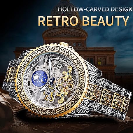 Sản phẩm FORSINING Retro Watch for Men Carved Self-Wind Mechanical Tattoo Tourbillon Moon Phase Independent Seconds Skeleton Automatic Big Dial Wrist Watches đang được bán với giá ưu đãi là $47.9382 tại nước Mỹ.