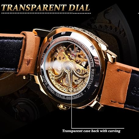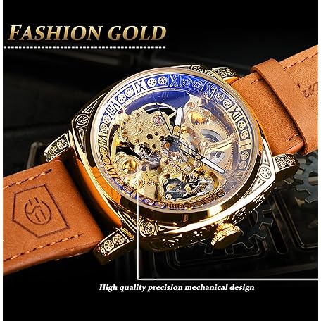 Thông tin sản phẩm FORSINING Watches for Man, Square Retro Mechanical Watch Self-Wind Carved, Skeleton Automatic Watches Vintage Leather Strap Wristwatch