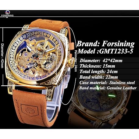 Thương hiệu FORSINING là cái tên nổi tiếng được rất nhiều khách hàng trên thế giới chọn lựa. Với kiểu dáng đẹp mắt, sang trọng, sản phẩm FORSINING Watches for Man, Square Retro Mechanical Watch Self-Wind Carved, Skeleton Automatic Watches Vintage Leather Strap Wristwatch  là sự lựa chọn hoàn hảo nếu bạn đang tìm mua một món  cho riêng mình.