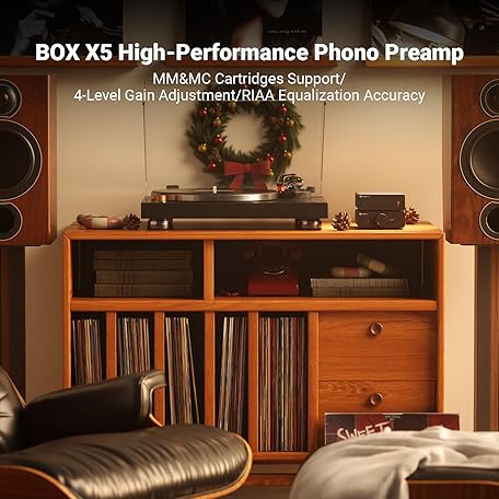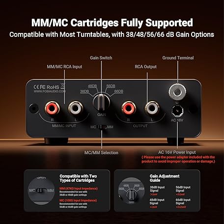 Thông tin sản phẩm Fosi Audio Box X5 Phono Preamp for Turntable, Mini Preamplifier Home Audio for MM & MC Cartridge Turntable/Phonograph Record Player/Active Speakers, 4-Level Adjustable Gain 38/48/56/66 dB with RCA