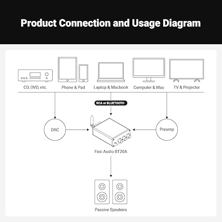 Thông tin sản phẩm Fosi Audio BT20A Bluetooth Stereo Amplifier, 2 Channel Home Audio Component Amplifiers for Passive Speakers, Mini Class D Amp Receiver 200W for Indoor/Outdoor/Garage/Ceiling/Bookshelf Speaker