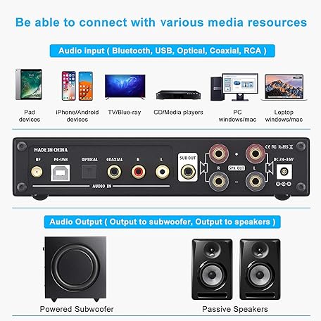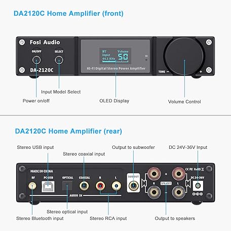 Sản phẩm Fosi Audio DA2120C 240W Bluetooth 5.0 Stereo Audio Hi-Fi DAC Amplifier Support aptX 24Bit-192kHz 2.1 Channel Integrated Class D Power Amp with RCA/PC-USB/Coaxial/Optical Input and Remote Control đang được bán với giá ưu đãi là $156.9491 tại nước Mỹ.