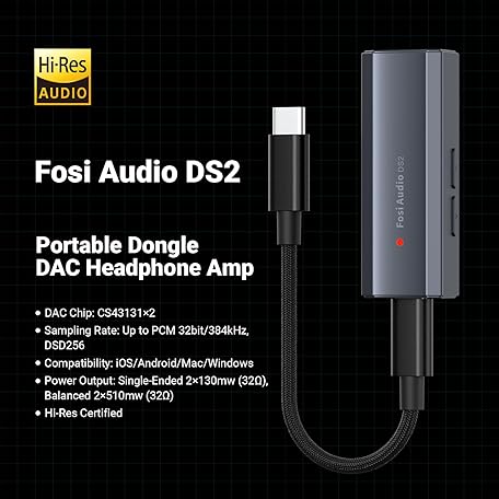 Sản phẩm Fosi Audio DS2 USB C to AUX Headphone Amp DAC Dongle 3.5mm Jack Audio Portable Amplifier Dual Output DSD256 4.4mm Balanced High Resolution CS43131 for iPhone 15 Pro Max Plus iPad Android Phone đang được bán với giá ưu đãi là $65.3891 tại nước Mỹ.