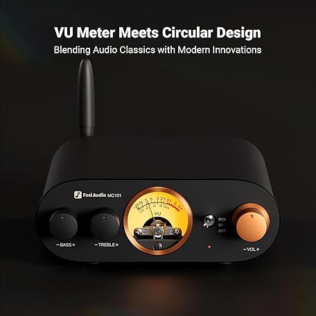 Sản phẩm Fosi Audio MC101 Bluetooth Stereo Amplifier Home Audio Component Mini Amp with VU Meter 2 Channel HiFi Receiver for Passive Speakers with Bass Treble Tone Control Vintage All Aluminum Alloy Build đang được bán với giá ưu đãi là $98.0891 tại nước Mỹ.