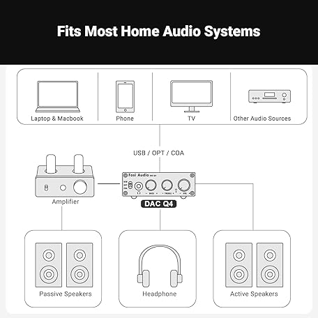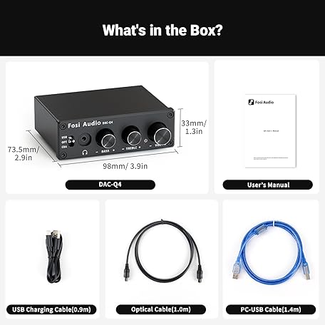 Thông tin sản phẩm Fosi Audio Q4 DAC Headphone Amp for PC, Desktop Digital to Analog Audio Converter for Home Stereo Amplifier and Powered Speakers, PC-USB/Optical/Coaxial Inputs, 3.5mm Headphone/RCA Outputs