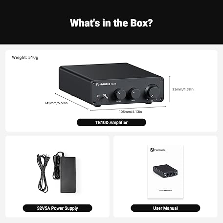Thông tin sản phẩm Fosi Audio TB10D 2 Channel Stereo Amplifier, Class D Mini Power Integrated Amplifiers 600W for Passive Speakers/Bass Shaker, Home Audio Component Desktop Amp Receiver TPA3255 with Bass Treble Control