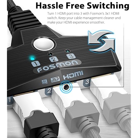 Sản phẩm Fosmon 4K HDMI Switch 3 in 1 out 4K@60Hz, 3-Port HDMI Switcher HD 1080P 60Hz HDCP 2.2, HDMI Splitter Hub Compatible with HDTV, PS5/4, Xbox, Fire Stick đang được bán với giá ưu đãi là $21.7891 tại nước Mỹ.