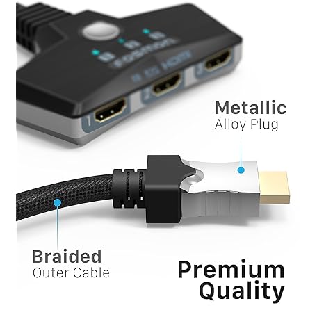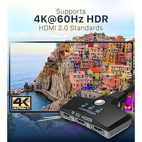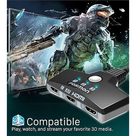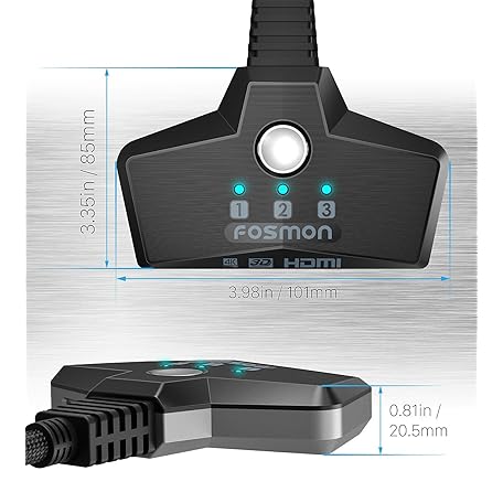 Thông tin sản phẩm Fosmon 4K HDMI Switch 3 in 1 out 4K@60Hz, 3-Port HDMI Switcher HD 1080P 60Hz HDCP 2.2, HDMI Splitter Hub Compatible with HDTV, PS5/4, Xbox, Fire Stick