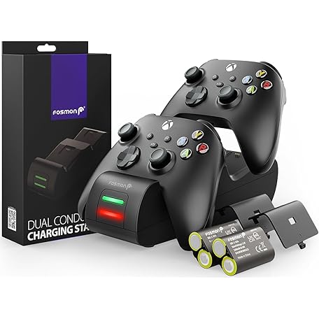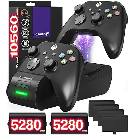 Thông tin sản phẩm Fosmon Fast Charging for Xbox Controller Charger Station for Xbox Series X | S, Xbox One, Elite w/ 2X 5280mWh Rechargeable Battery Packs, 4 Covers & Dock Stand