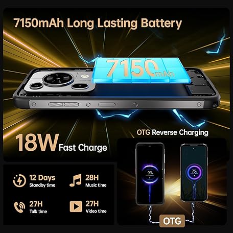 Thông tin sản phẩm FOSSIBOT F112 PRO (2025) Rugged Phone Unlocked 5G - 24GB RAM+256GB/1TB ROM Cell Phone, 6.88''Display, 7150mAh Battery Smartphone, 50MP Camera, Android 14 Dual SIM Phones, IP68/IP69K/NFC/GPS,Orange
