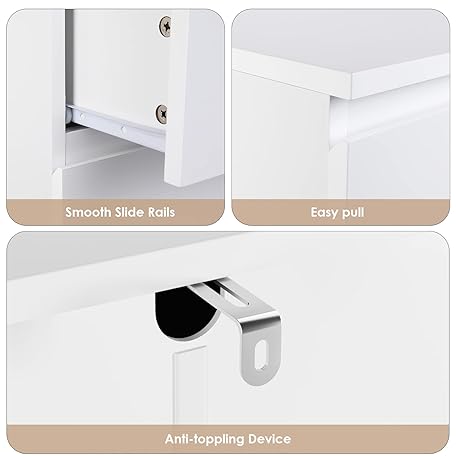 Thông tin sản phẩm FOTOSOK White Dresser, 6 Drawer Dresser, Modern Tall Floor Storage Cabinet with Metal Sliding Rail, Wooden Handleless Drawer Cabinet, 6-Layer Large Capacity Vertical Dressers for Home & Office
