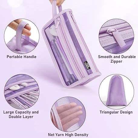 Thông tin sản phẩm Four Candies Grid Mesh Pencil Case with Handle and Zipper, Clear Double-layer Pencil Pouch Marker Pouch, Travel Makeup Bag, Cute Transparent Stationary Organizer Pen Bag for Adult Office College