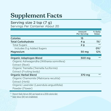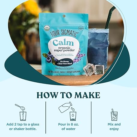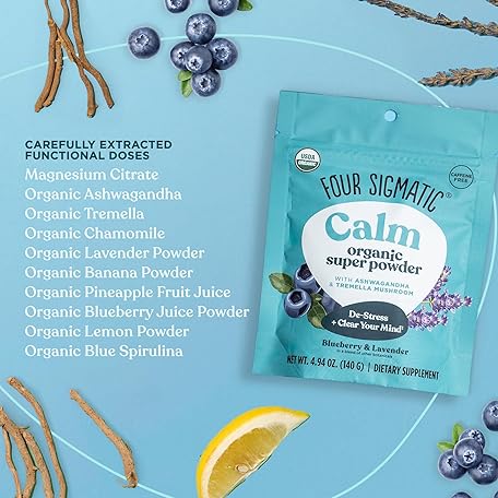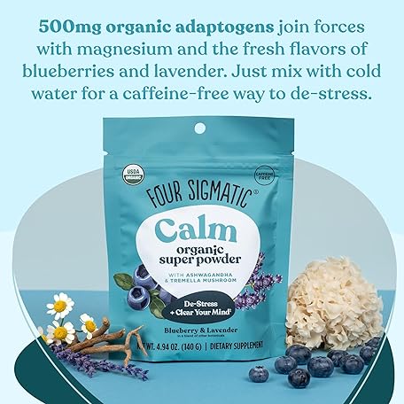 Thông tin sản phẩm Four Sigmatic Calm Super Powder | Organic Superfood Powder with Magnesium Citrate, Organic Chamomile Extract, and Tremella Mushroom Extract | Blueberry Drink Mix (4.94 oz.)