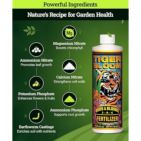 Thông tin sản phẩm FoxFarm Tiger Bloom Liquid Fertilizer Concentrate - Fast Acting Formula for Vicious Growth with Phosphorus - Encourages Fruit, Flower & Bud Development, NPK 2-8-4 (Pint)