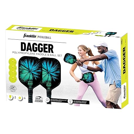 Sản phẩm Franklin Sports Pickleball Paddle and Ball Set - (2) Dagger Fiberglass Rackets + (4) X-40 Balls - USA Pickleball (USAPA) Approved - 2 Player Set đang được bán với giá ưu đãi là $43.5891 tại nước Mỹ.