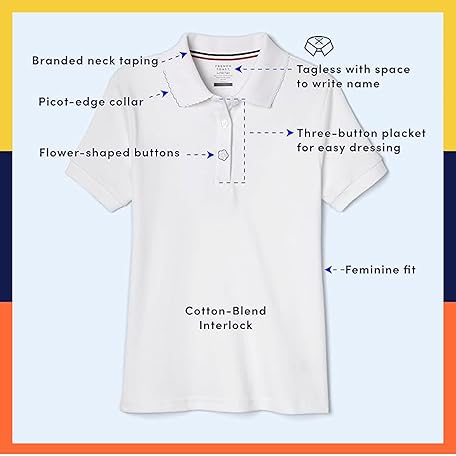 Sản phẩm French Toast Girls' Short Sleeve Picot Collar Polo School Uniform Shirt (Standard and Plus) đang được bán với giá ưu đãi là $9.6901 tại nước Mỹ.