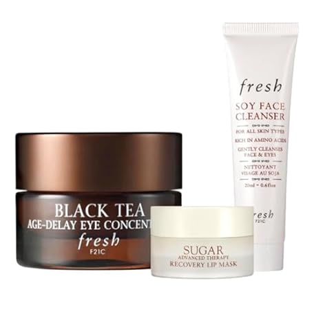Thông tin sản phẩm Fresh Black Tea Age Delay Eye Concentrate Cream 0.5oz / 15mL (Full Size), Fresh Soy Face Cleanser (Mini Size), Sugar Advanced Lip Mask (Mini Size)