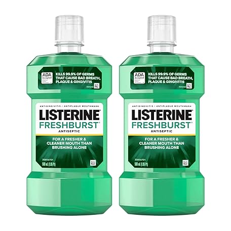 Thông tin sản phẩm Freshburst Antiseptic Mouthwash for Bad Breath, Kills 99.9% of Bad Breath Germs & Fights Plaque & Gingivitis, ADA Accepted Mouthwash, Spearmint, Convenience Pack, 2 x 500 mL