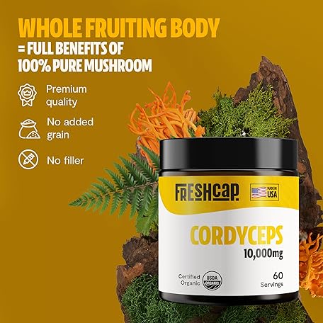 Thông tin sản phẩm FreshCap Mushrooms Cordyceps Mushroom Powder 10,000mg - Mushroom Extract Immunity Supplement, Ayurveda Nootropic Mushroom Supplements (60 Servings)