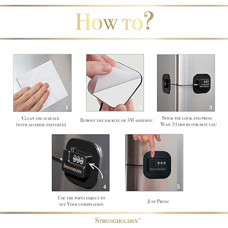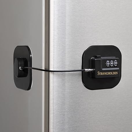 Thông tin sản phẩm Fridge Lock Combination, Refrigerator Lock for Kids, Fridge Locks for Kids - Take Care of Your Family with Freezer Lock by Strongholden - No Keys Needed (Black & Square)