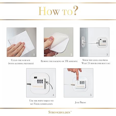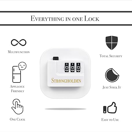 Thông tin sản phẩm Fridge Lock Combination, Refrigerator Lock for Kids, Fridge Locks for Kids - Take Care of Your Family with Freezer Lock by Strongholden - No Keys Needed (White & Square)