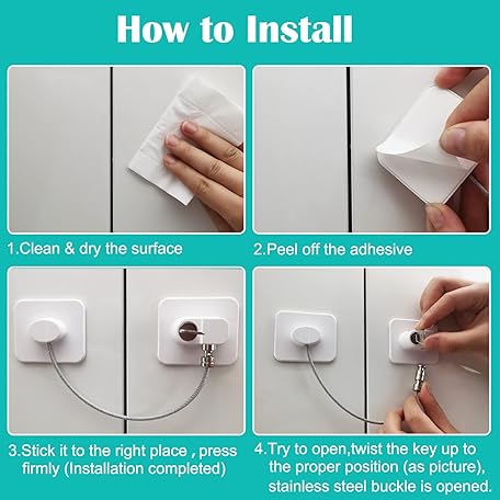 Fridge Lock FANYAQIN 4 Pack Refrigerator Lock for Kids with Keys, Child Locks for Cabinets, Drawers, Refrigerator, Oven, Toilet, Adhesive Cabinet Locks Childproof White