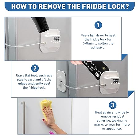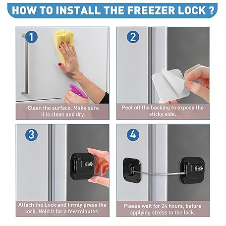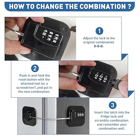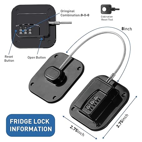 Thông tin sản phẩm Fridge Lock, Refrigerator Lock, Combination Lock, Heavy Duty Adhesive Safety Lock Easy Install No Keys Needed (2, Black)