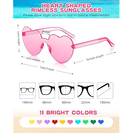 Sản phẩm Frienda 20 Pairs Heart Shaped Sunglasses Rimless Candy Color Glasses for Women Men Party Favor đang được bán với giá ưu đãi là $14.9221 tại nước Mỹ.