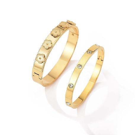 Sản phẩm Friendship Love 2Pcs Set Bracelet for Women 18K Gold Plated Stainless Steel with Crystal Bangle Cuff Jewelry đang được bán với giá ưu đãi là $9.7991 tại nước Mỹ.