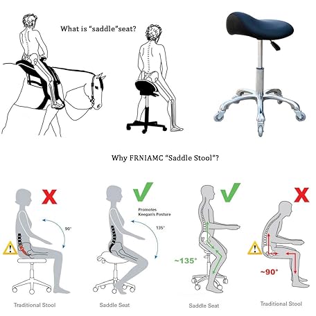 • FRNIAMC Professional Saddle Stool with Wheels Ergonomic Swivel Rolling Height Adjustable for Clinic Dentist Beauty Salon Tattoo Home Office (Black)