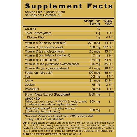 Sản phẩm Fucoidan Powered with AHCC® Brown Seaweed Immunity Supplement with High Purity Organic Mekabu Mozuku Agaricus 50 Concentrated Liquid Extract Packets Made in Japan (1 Box) đang được bán với giá ưu đãi là $959.2 tại nước Mỹ.