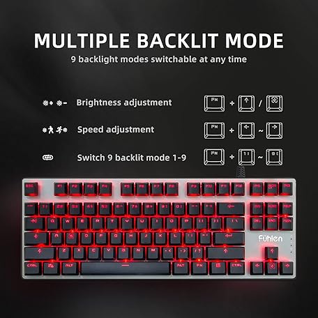 Thương hiệu Fuhlen là cái tên nổi tiếng được rất nhiều khách hàng trên thế giới chọn lựa. Với kiểu dáng đẹp mắt, sang trọng, sản phẩm Fuhlen G87 Mechanical Keyboard 87 Keys - Tactile & Clicky Cherry MX Blue Switches - Red Backlight - 100% Anti-Ghosting for PC Laptop (Black), Grey là sự lựa chọn hoàn hảo nếu bạn đang tìm mua một món cho riêng mình.