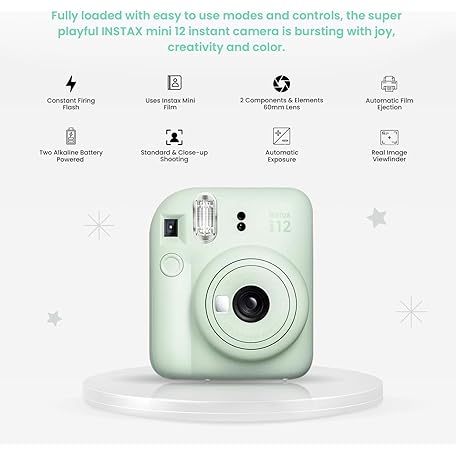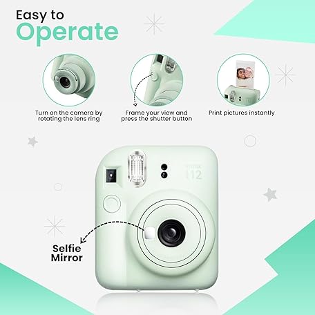• Fujifilm Instant Mini 12 Camera + Accessory Bundle & Custom Case + Fuji Instant (20 Shots) Designer Mini Photo Album (60 Pockets) (Mint Green)