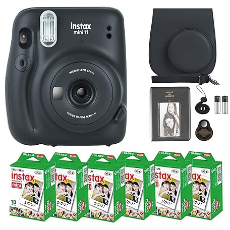 Thông tin sản phẩm Fujifilm Instax Mini 11 Camera with Fujifilm Instant Mini Film (60 Sheets) Bundle with Deals Number One Accessories Including Carrying Case, Selfie Lens, Photo Album, Stickers (Charcoal Gray)
